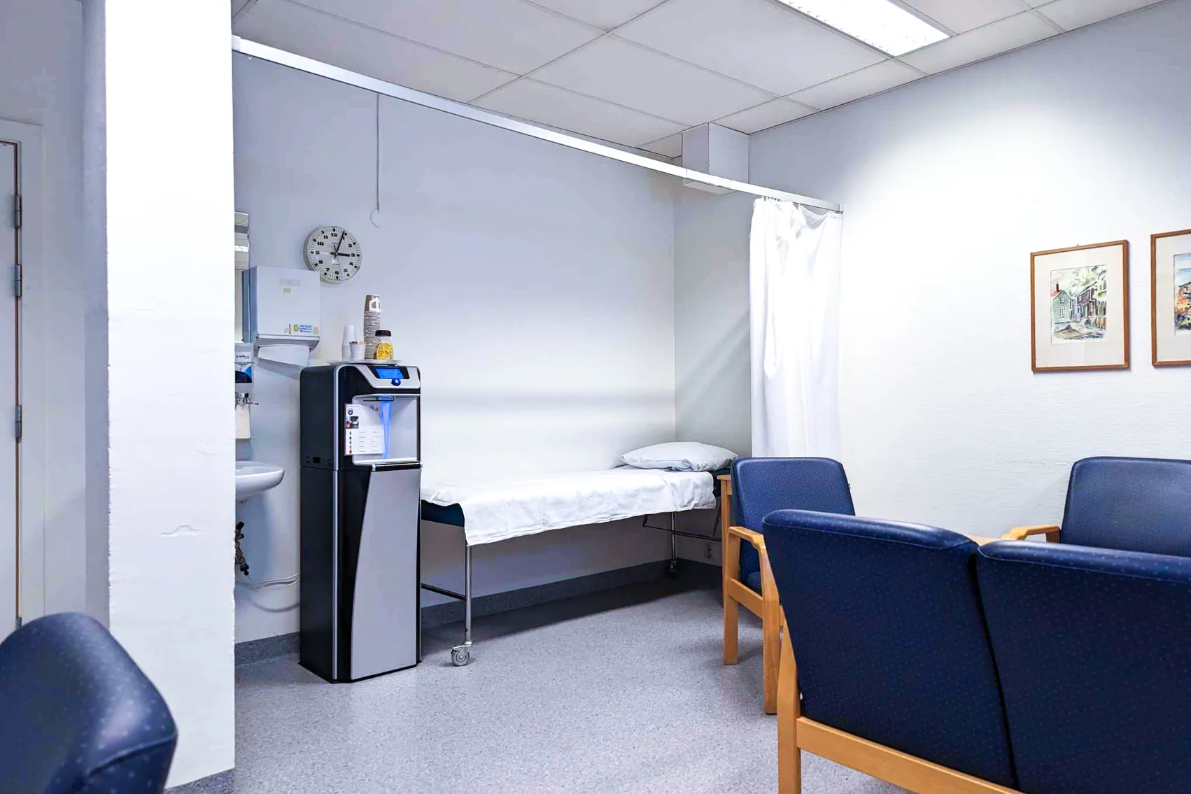 Her har vi også en seng hvis du trenger en plass å hvile i løpet av undersøkelsen.