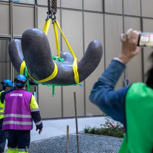 I bygget hvor barne- og ungdomsavdelingen holder til, vil Bjørn Bjarres skulptur Vesen prege gårdsrommet. Skulpturen er laget i steintypen anortositt, karakteristisk for kysten mellom Flekkefjord og Ogna. Steinhogger Martin Kuhn har ferdigstilt skulpturen som veier rett under fire tonn.
